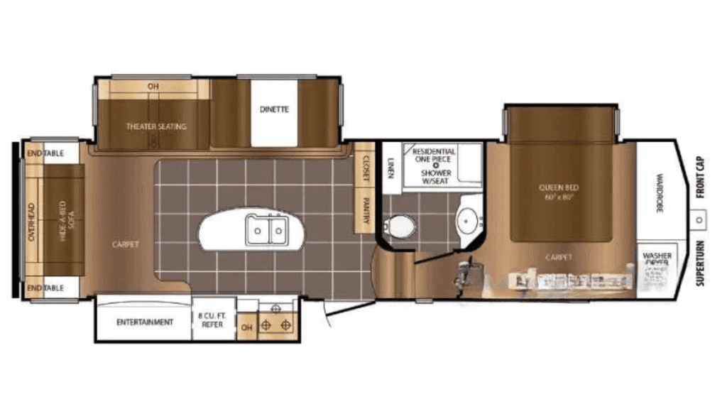 The 2015 Crusader 315RST by Prime Time Manufacturing delivers a high-end fifth wheel experience with residential finishes, spacious opposing-slide living, and reliable construction. Designed for extended stays or comfortable weekend getaways, this model blends luxury, practicality, and storage in a well-laid-out floorplan.