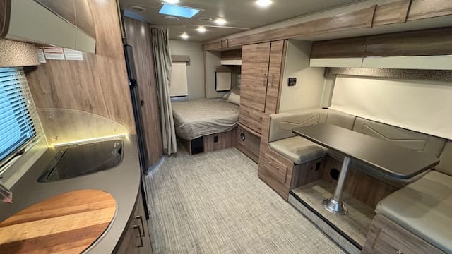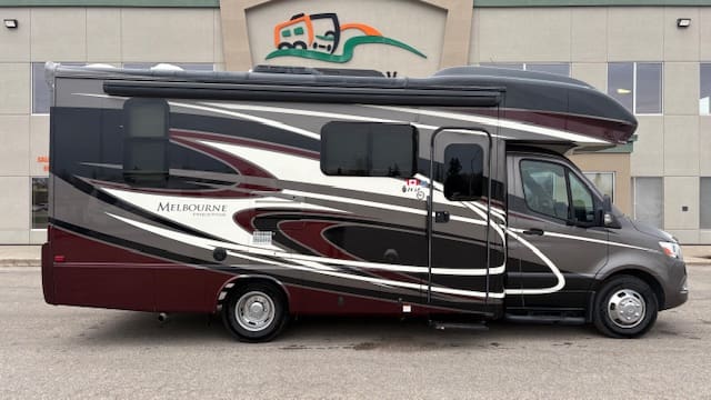 The 2020 Jayco Melbourne Prestige is a luxury Class C motorhome built on a Mercedes-Benz Sprinter chassis with a diesel V6 engine, known for its fuel efficiency and premium features such as full-body paint, frameless windows, and leveling jacks. It features a compact, 25-foot length, a luxurious interior, abundant storage, and innovative design for comfortable and reliable travel.