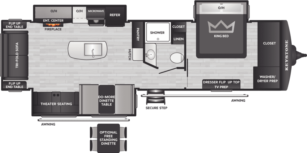 The 2026 Keystone Bullet 310RES is a spacious travel trailer combining family-friendly design with practical amenities and comfortable living areas. Featuring a rear entertainment setup and thoughtful interior layout, it’s built to make camping and road trips enjoyable for everyone.