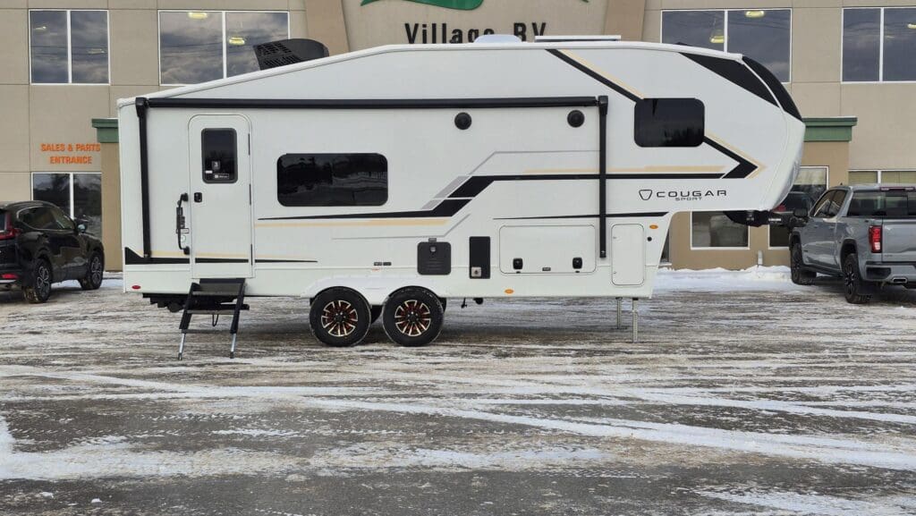 Compact yet capable, the 2026 Cougar Sport 2100RK is a lightweight fifth-wheel designed for easy towing and full-featured camping. With a practical rear kitchen layout, single slide-out, and private front bedroom, it’s ideal for couples or small families looking for comfort, convenience and quality in a shorter footprint.
