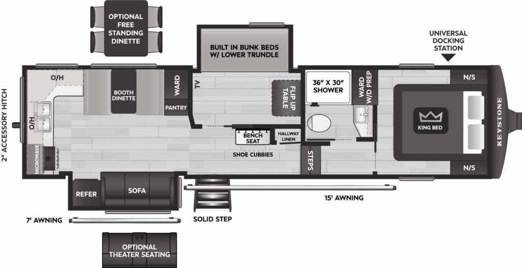 The 2026 Cougar 29MBD brings a smart, family-friendly design in a towable fifth wheel optimized for half-ton trucks. With a redesigned mid-bunk layout, spacious living areas, and Keystone’s signature build quality, this model is ideal for families or groups looking for comfort, flexibility, and style on the road.