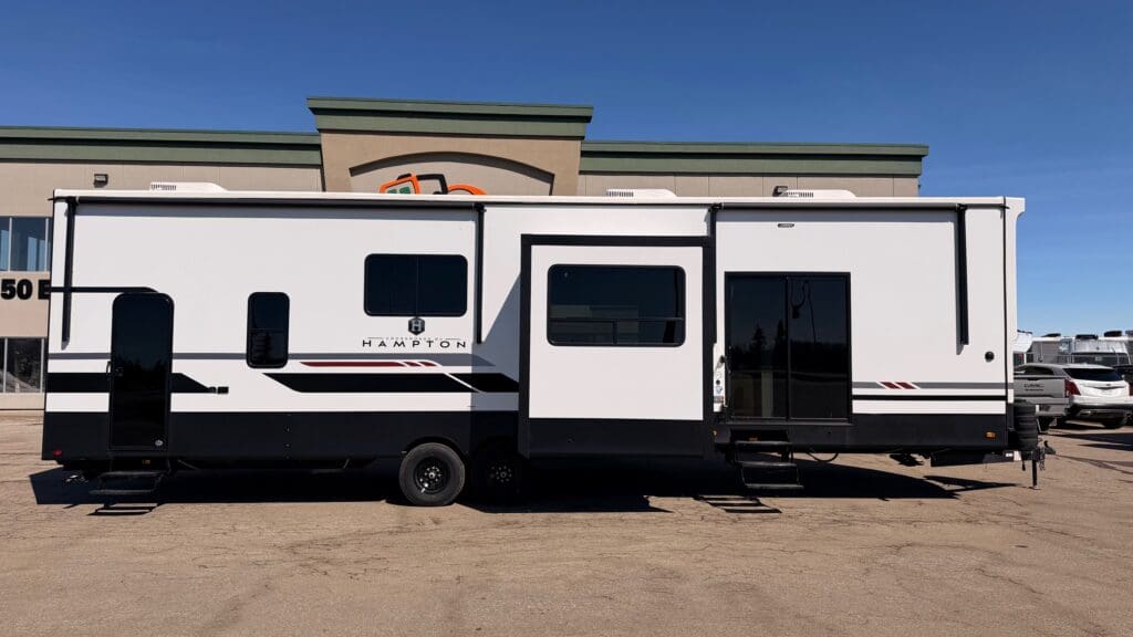 The 2026 Hampton 388FKL is a premium destination trailer designed for extended stays or seasonal use. With four slide-outs, a 9-foot interior ceiling height, and a front-kitchen layout that flows into an expansive living space, it brings residential comfort to your travel experience. Built by CrossRoads with superior construction and upscale finishes, the 388FKL offers the space, versatility, and refinement you want at camp.